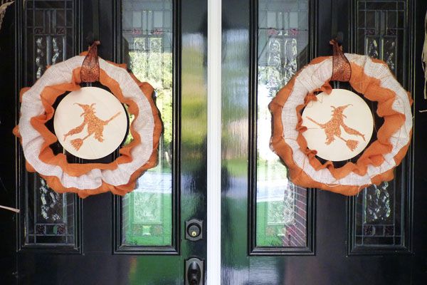7. Repeat the process again and make the second wreath (if you need, of course). Hang wreaths on your front doors and wait for October 31st!