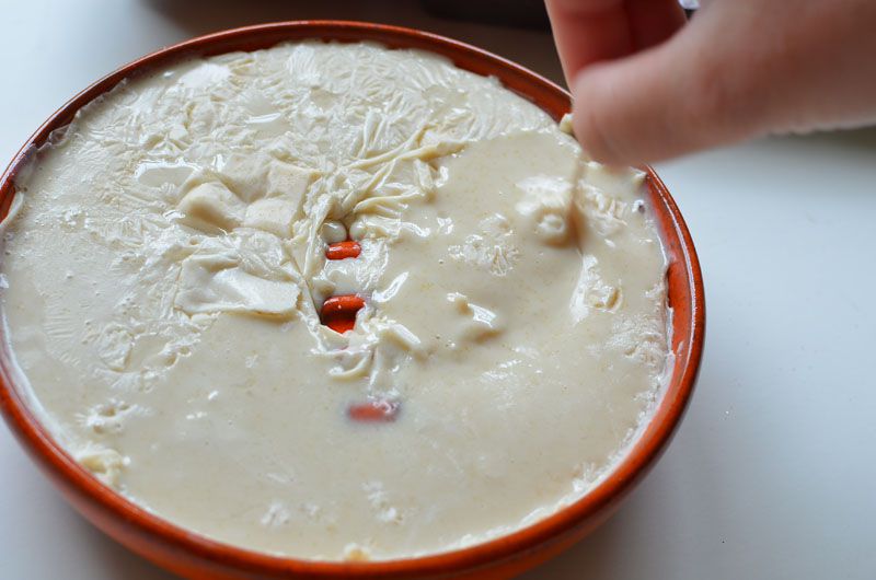 As soon as your homemade soap is fully sobered and thickened, you should add color. You may use the food color gel, because it’s easier to apply than traditional liquid paints, and gives a bright, intense color. Mix different colors for pretty warm fall combination or fashionable copper effect.