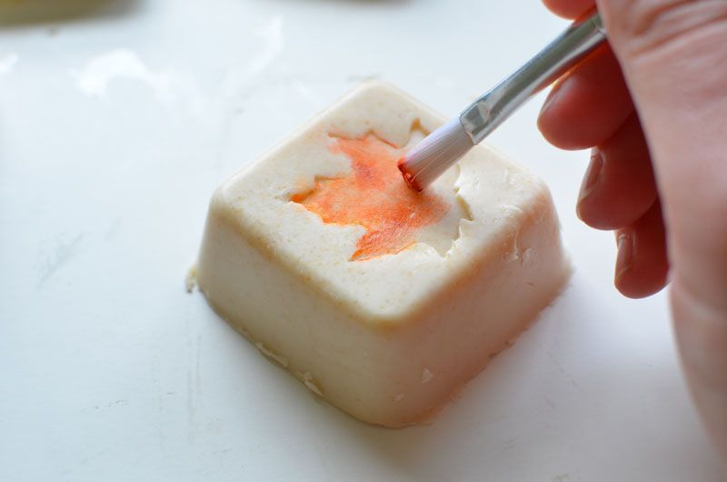 To avert any mistakes, place the metal leaf back into the soap. Rub around the edges with a finger to remove any stray bits of color. Don’t spoil the pic with a large amount of color on the edges. Paint slowly!