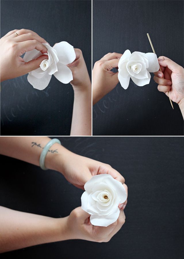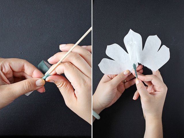 1. Using petal template cut petal pieces out of coffee filters.