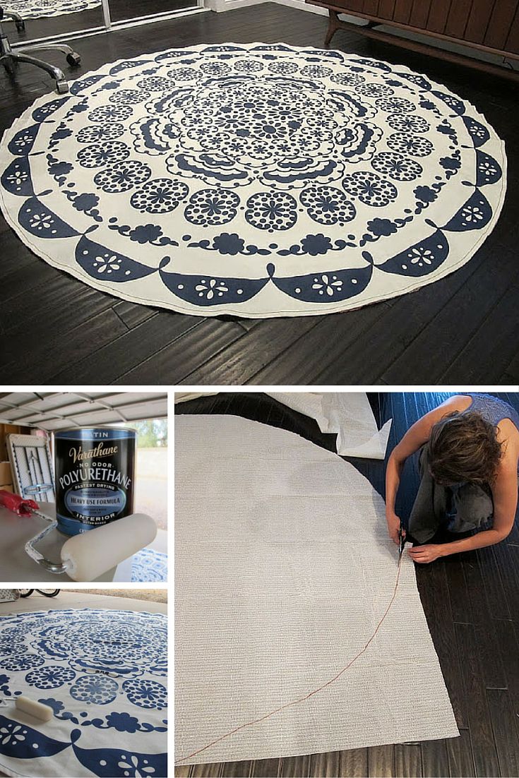 Table cloth fabric usually comes in beautiful patterns that you may want to use for a rug. You absolutely can do it. Just need some bright or dark paint that fits your room design and your mood very well.