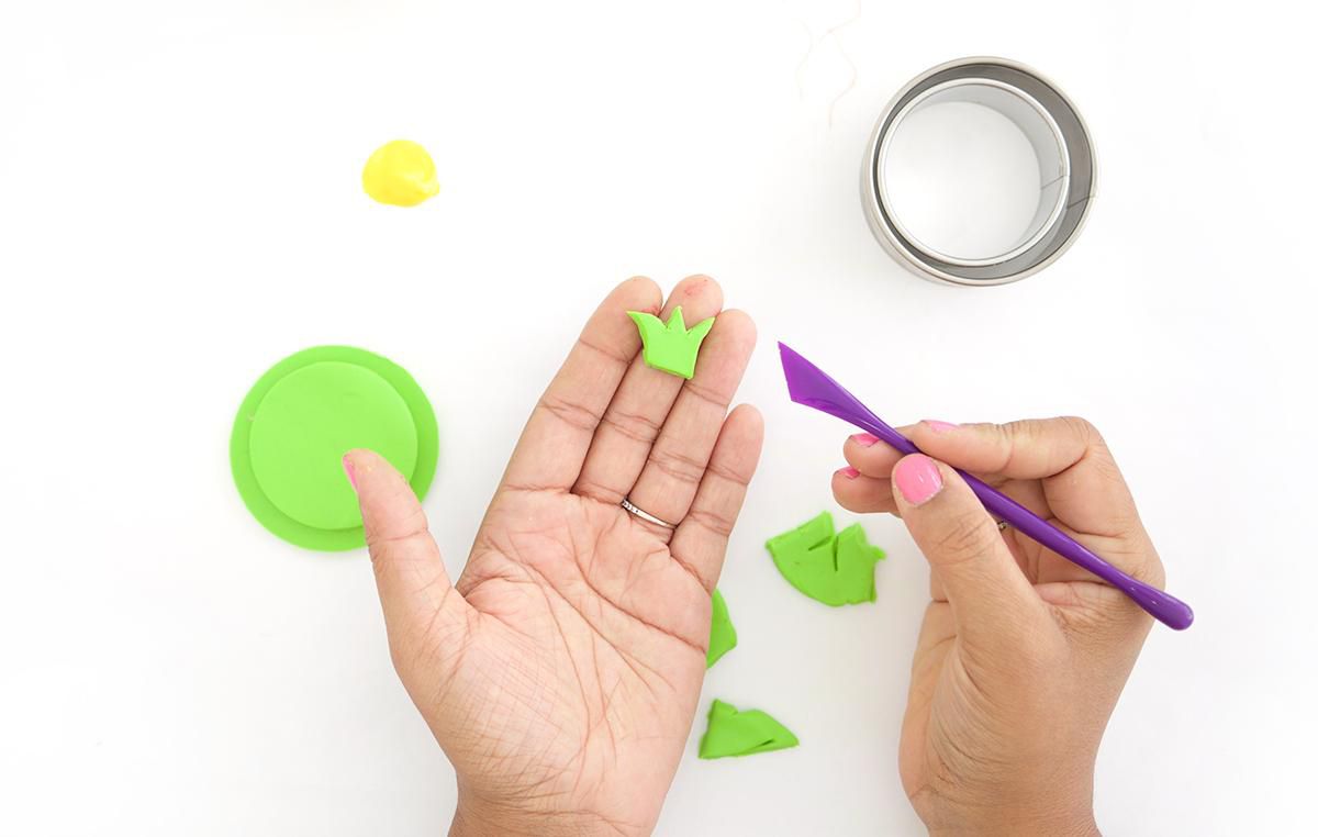 Then, using a knife or a scalpel you can proceed to cut the leaves out of polymer clay.