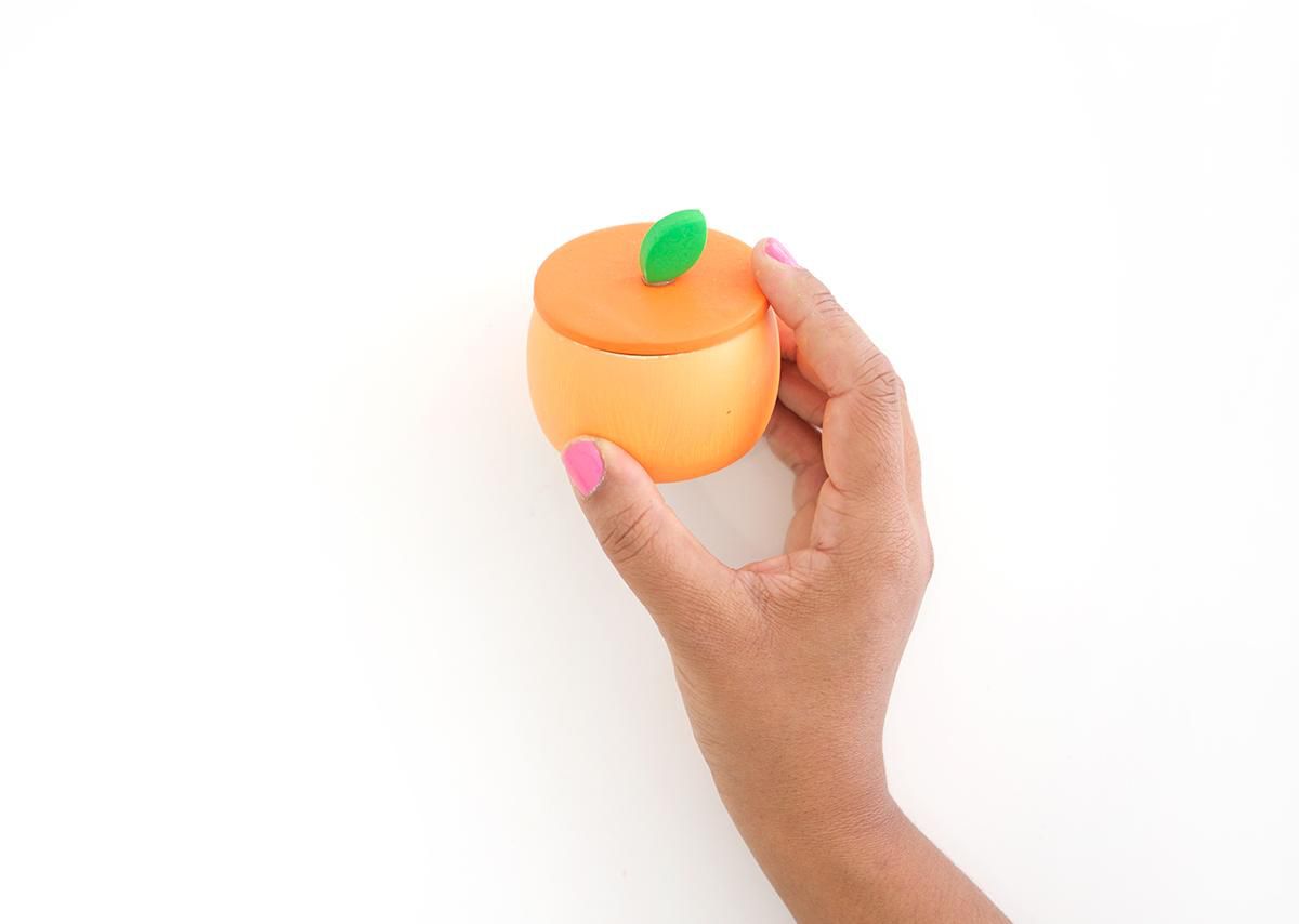 Paint the next bracelet with peach paint, make a lid out of clay of the same color. And the last step is to glue a small leaf on top.