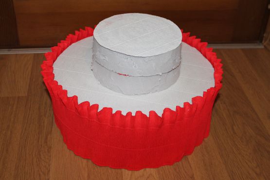 To start with, form a cake base, using cardboard sheets.