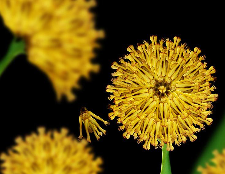 Webber’s works create a fantasy world where people are tiny, flowers gigantic, and the human body is as natural as any form of plant life. These amazing images of colourful birds and insects have been given a truly human touch - because the artist has created them out of people.