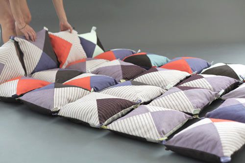 You can also make pillows yourselves, or, in my opinion, it will be much easier to buy 4-5 the most simple and inexpensive pillows. Put the pillows into the sections from pillowcases that you've got, and you're done! That's an idea of an easy, fast, inexpensive, way of making a mattress for all occasions with your OWN HANDS!