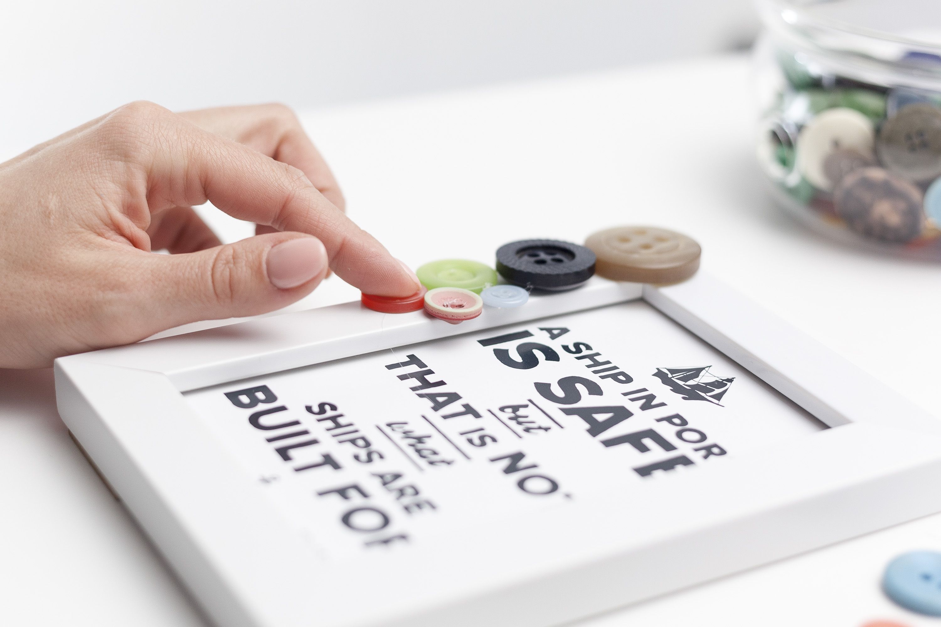 For example, different buttons! Everyone has such collection at home (you can actually already forget about those clothes but buttons are still here). Just glue them around the frame!