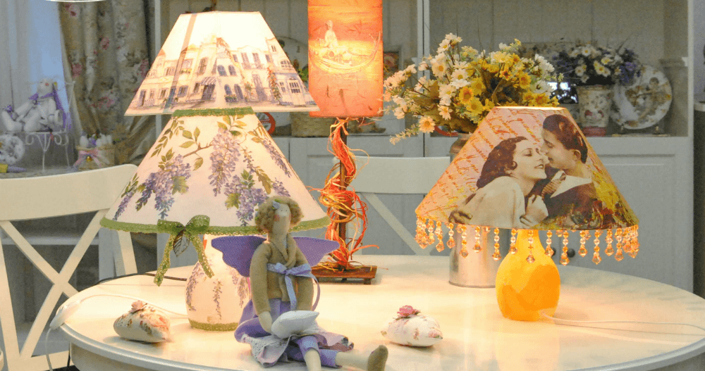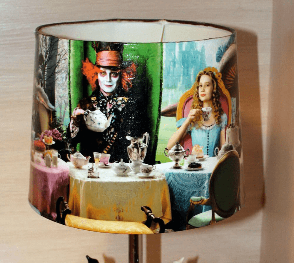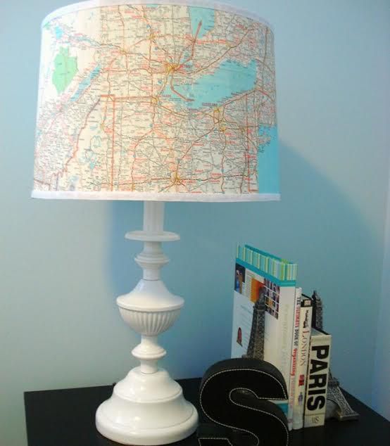 You can decorate your lamp with anything - children's drawings, favorite pictures, words or even with a map!