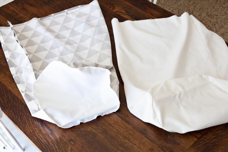 Flip the exterior cover side out and keep the interior one inside out. Put the inner cover in to the outside one. Put their edge. Tuck them several times inside and secure with pins.