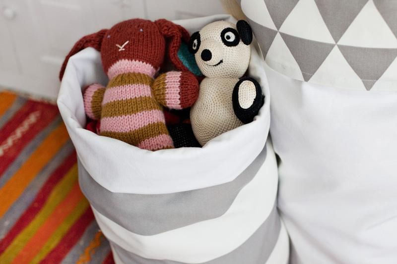 You can pre-iron the folds with a hot iron, so that the fabric doesn’t ridge. Stitch the hem and your super-cool toy basket is ready!