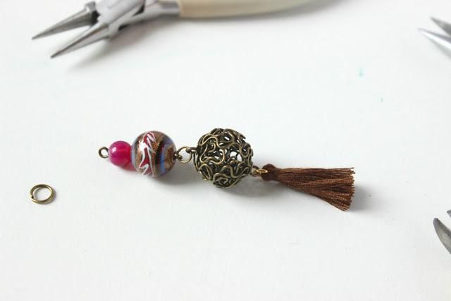 First of all, you need to make a pendant, putting several beads and tassels together.
