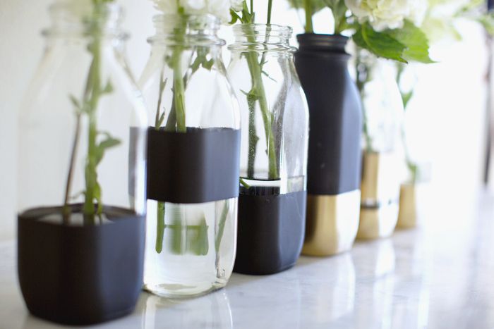 Now we are done! Get some beautiful flowers and you are ready to show your vases to your guests! Aren’t they looking unusual? The best part is that those bottles will go well with almost every interior design. If you don’t like the black and gold colors you can simply choose other ones and paint your bottles with just the same technique.