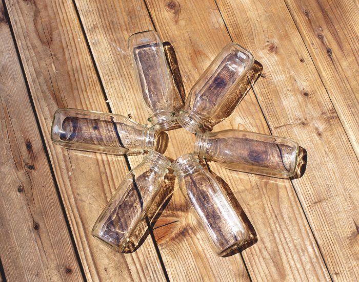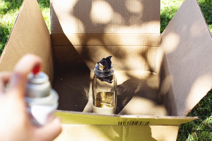 Time to paint! Put the bottle in the middle of the cardboard box and start spraying the bottle going around.