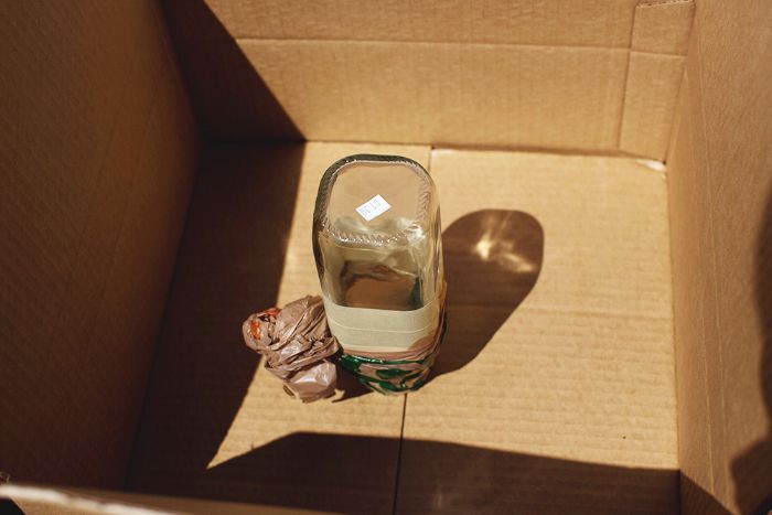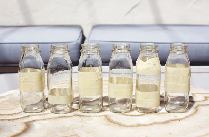 When you have decided on the design, cover the places that you do not want to be painted using plastic bags or zippers. Fix them with the tape if needed. If you are going to spray the bottleneck don’t forget to stuff it with the tissue paper so the paint won’t get inside.