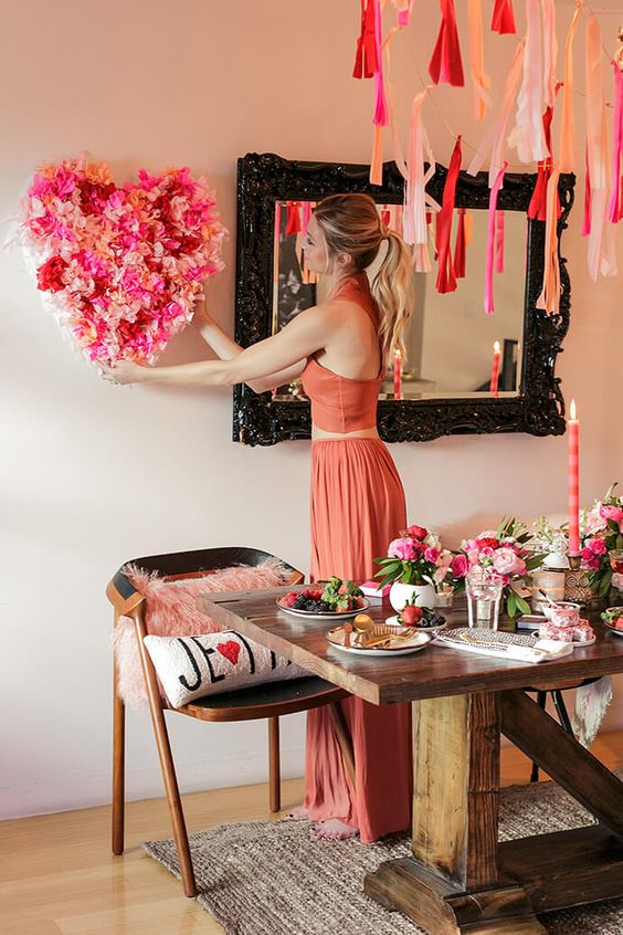 All you need is some color paper, glue and scissors, some roses and wreath. And of course, your feelings. Let them lead the way!