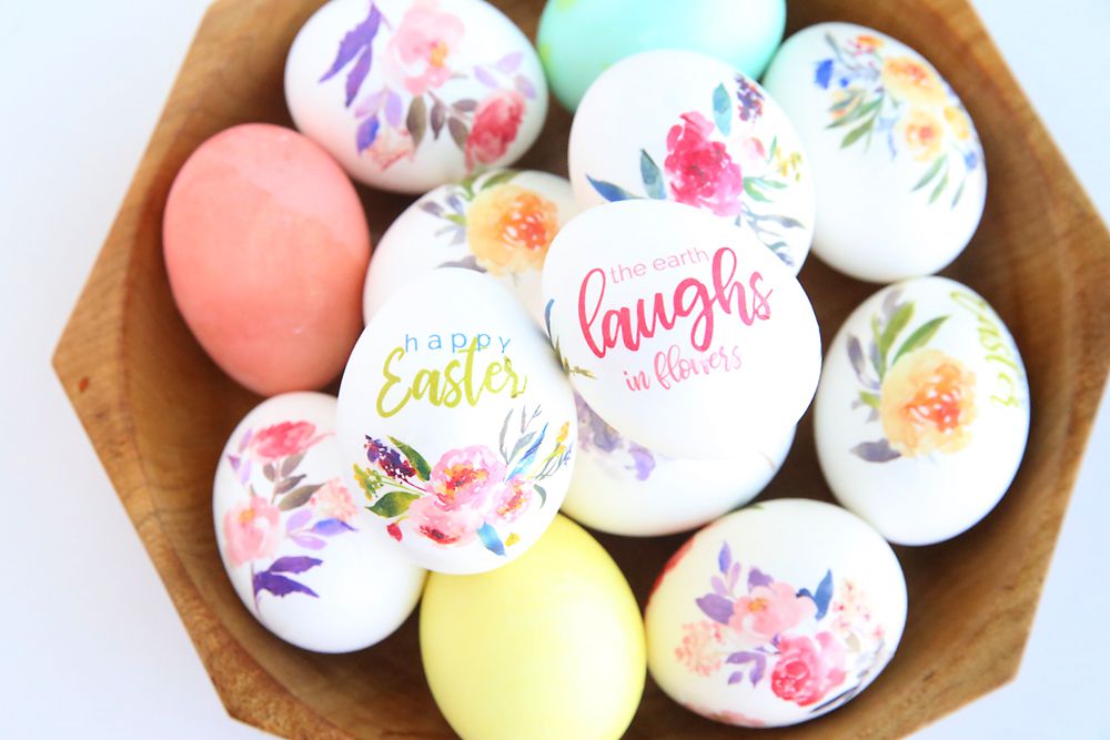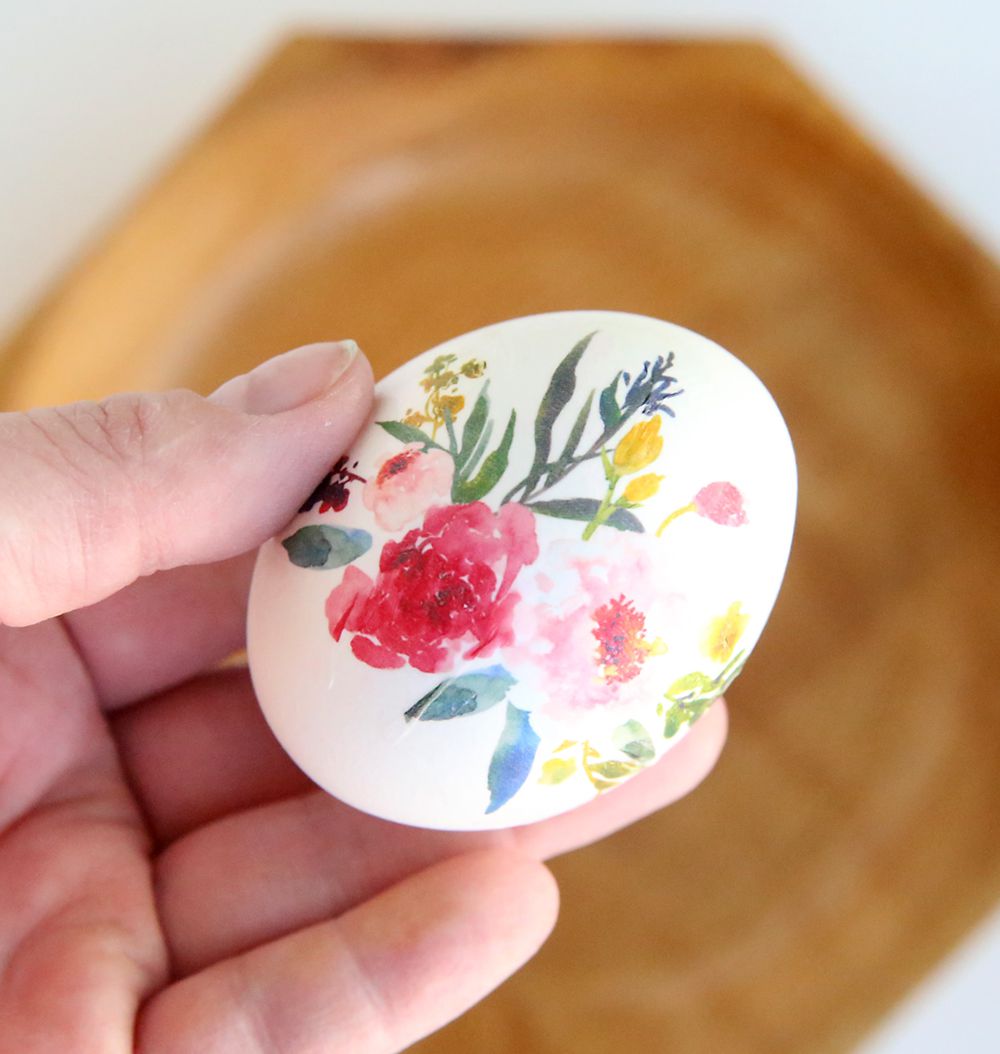 I would like to share one more Easter decoration idea. Honestly, I have a little bit bored by Easter holiday previous years because we were always decorating home and food the same way. Same paint and same stickers on eggs. I have found this cool idea on how to make this incredibly cute floral eggs using tattoo paper. Those are pretty easy and fast to make. And your kids can participate!