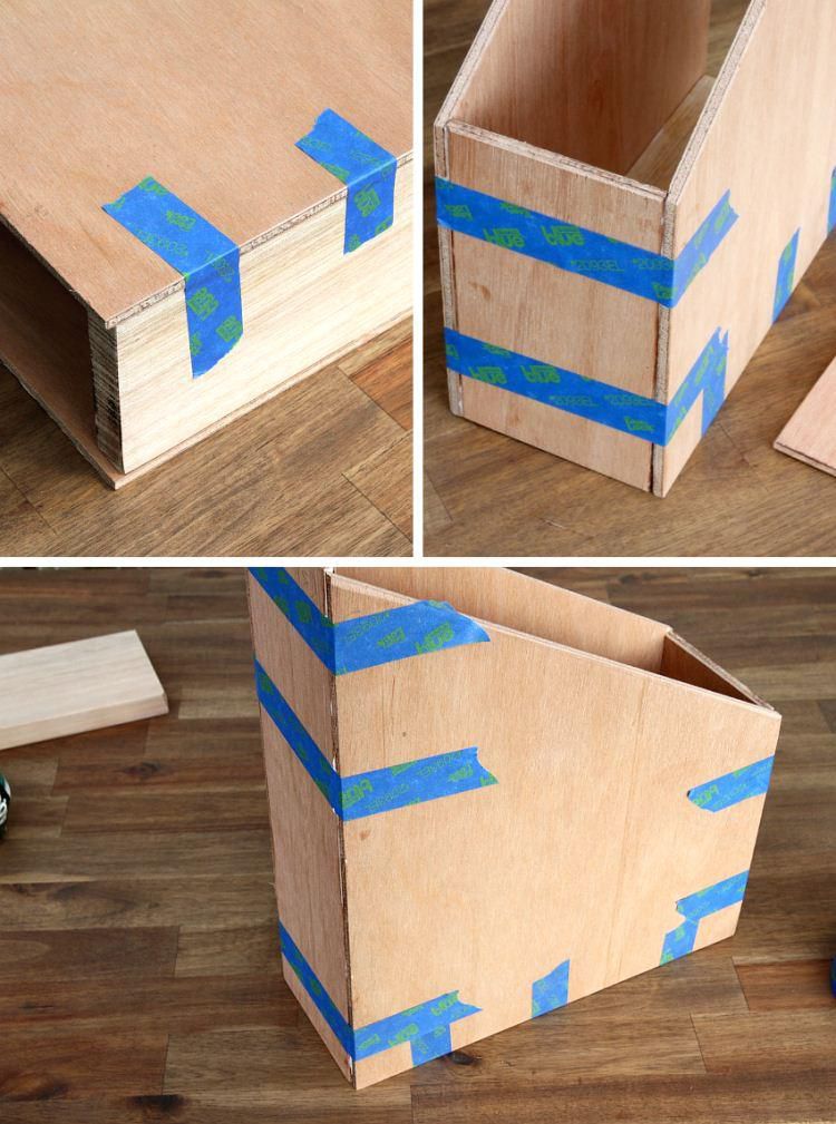 To put the details together, you will need to make a bottom part out of small boards of the size of 25 × 100 mm, then out cut the sides for the front and back parts out of plywood boards, 100 mm in width. Then stick the details together using PVA glue, fix them using masking tape and leave the construction to dry for 7-9 hours.