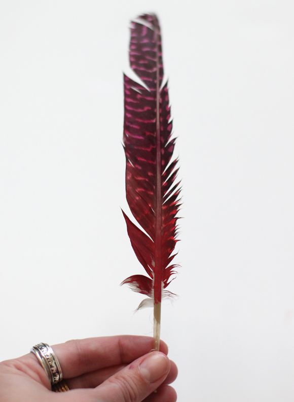 Get as creative and colorful as you want with the feathers! I chose bright red and pink, blue and turquoise colors for my feathers.
