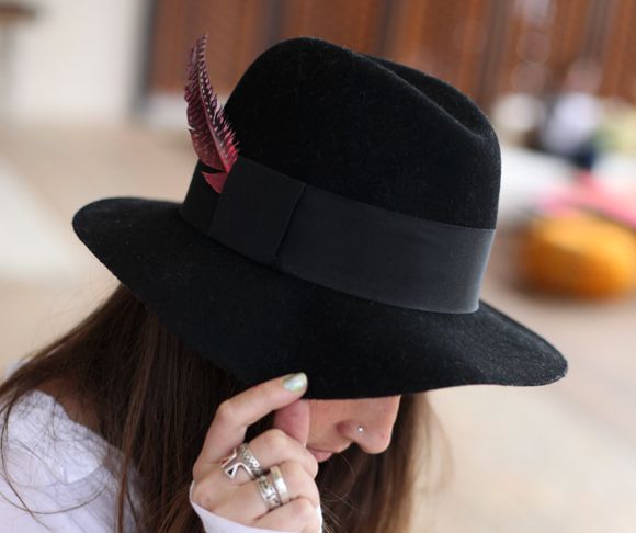 Another idea: stick one in a fedora for an awesome festival look. You’ll be the star of the party! Those fake feathers may become the best detail of your favorite bohemian look.