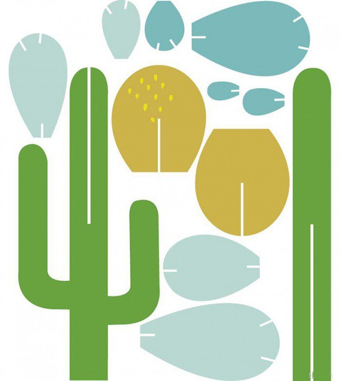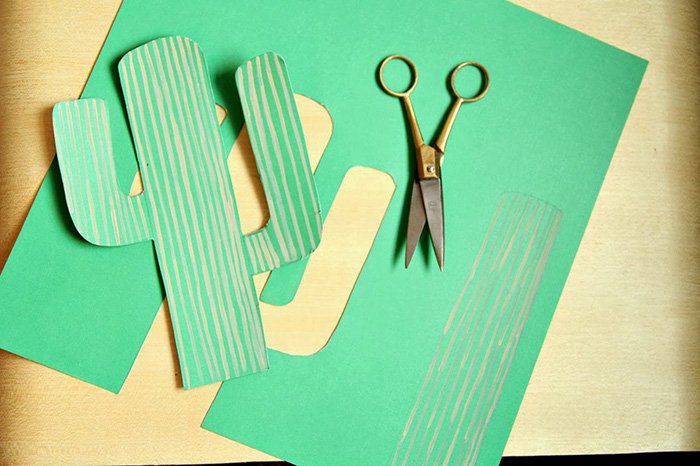 1. On a green paper draw a cactus with a ruler and pencil. Note: the angles should be rounded.