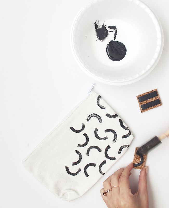 Put some paint on the stamps and try it onto the piece of paper first. Remember to secure the inside of the pouch with something so when you will stamp it paint won’t go onto the other side. Flatten your pouches and start stamping them the way you want. TIP: You can create certain pattern on the paper and then try and follow the steps on the pouch.