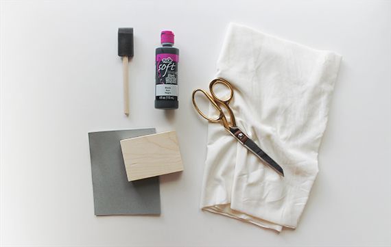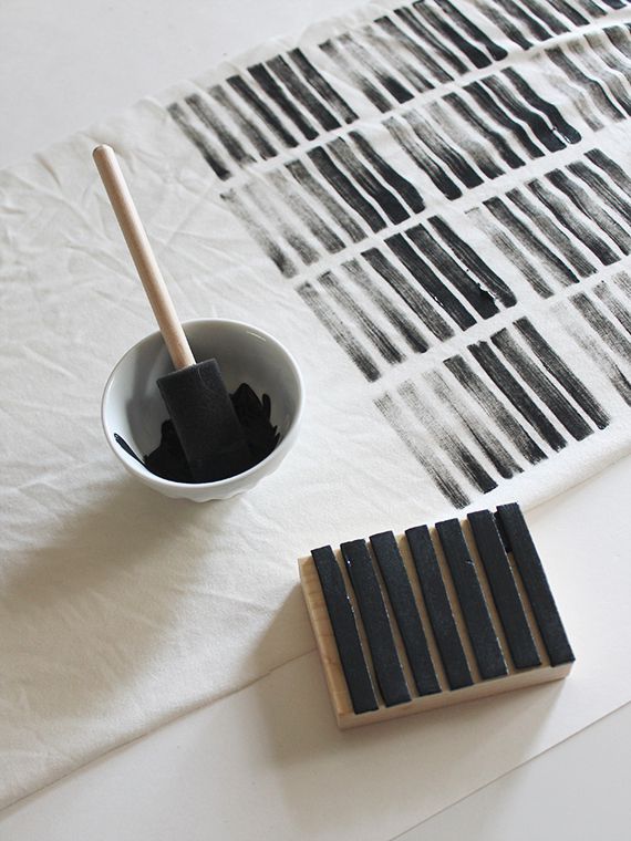 Prepare your fabric paint in a bowl. Then put the paint onto your stamps using the brush. Now stamp it onto the scarf.