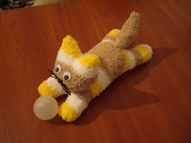 Cute handmade kitty can be done from such ordinary material as socks! Here's an instruction how to make it!