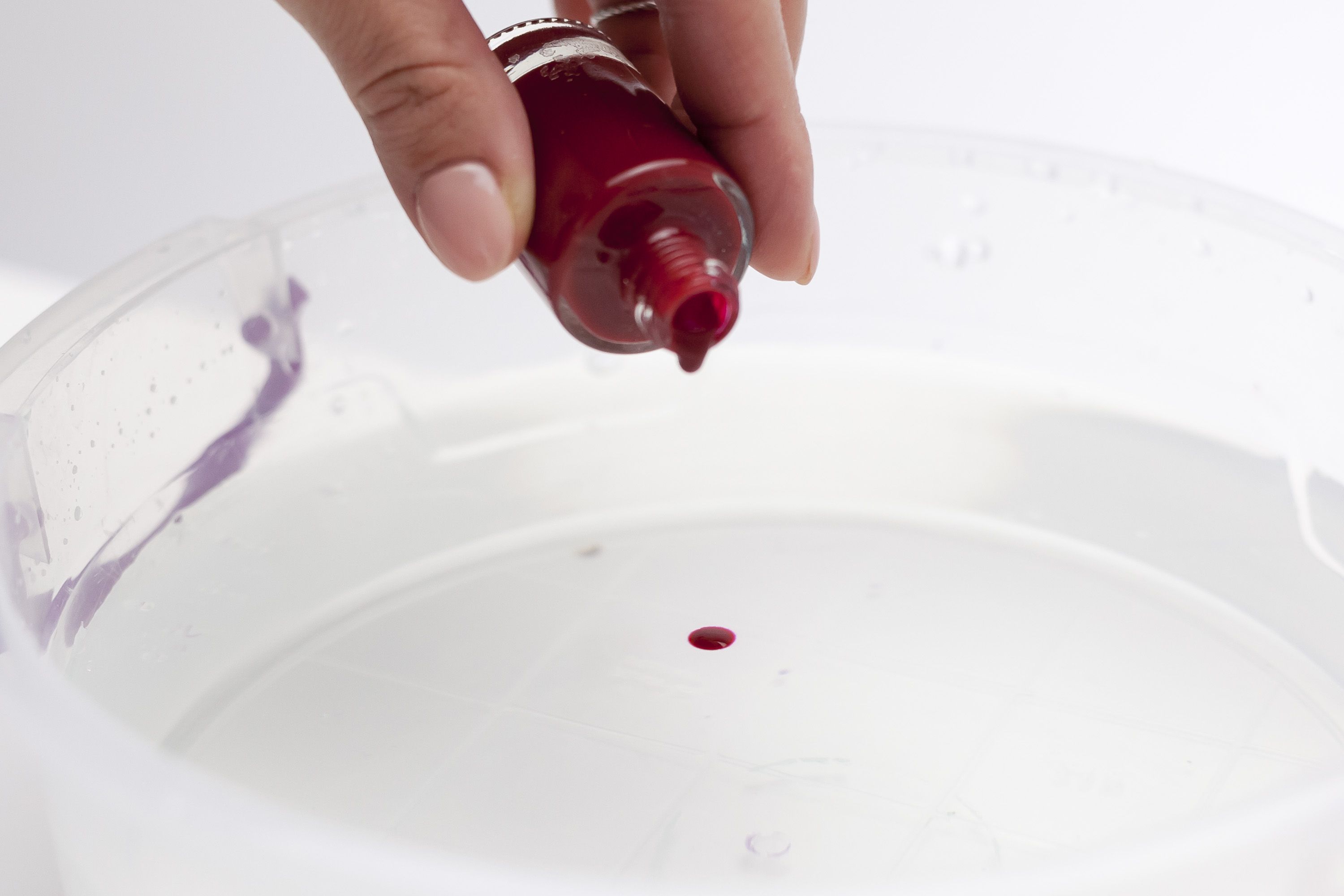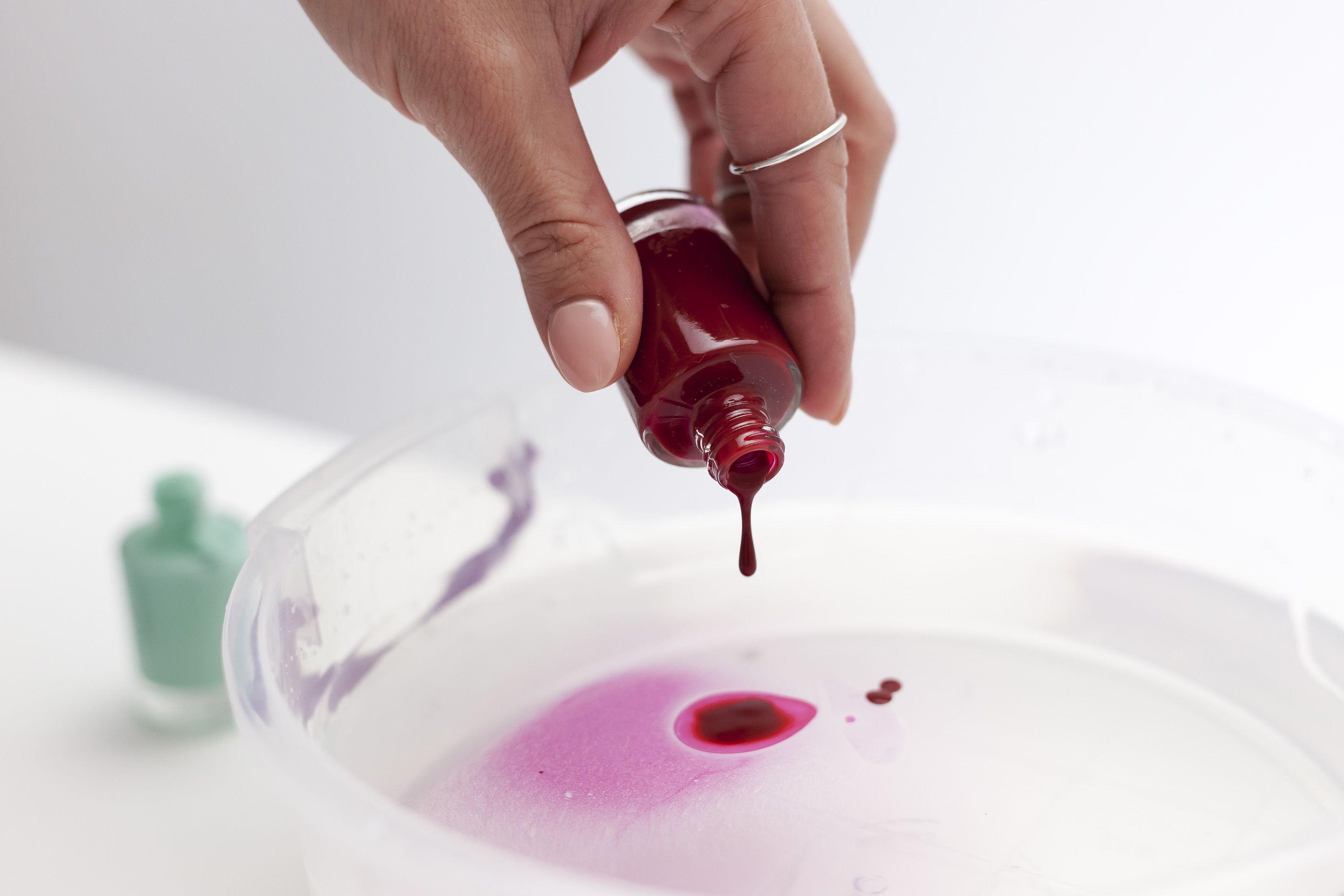 Take a wide jar with water and add few (about 8 - 10) drops of nail polish.