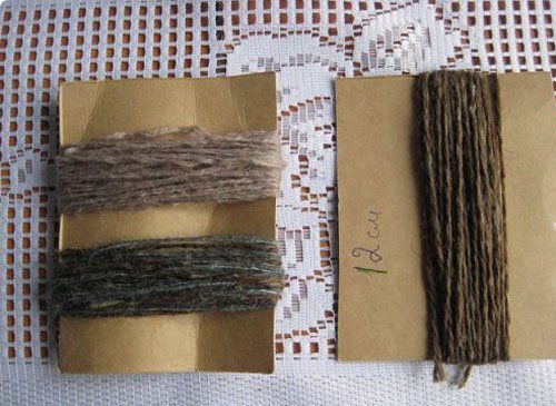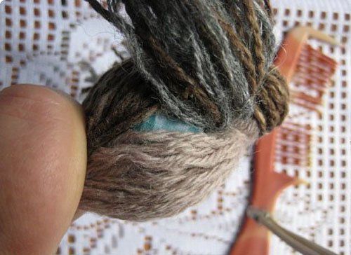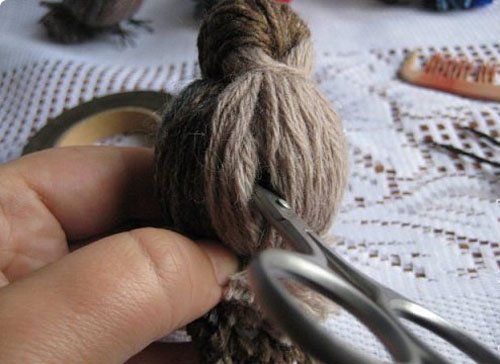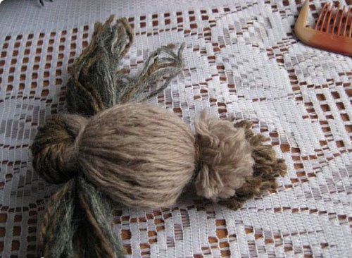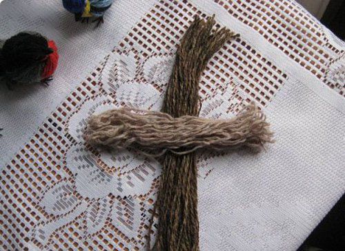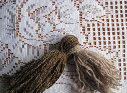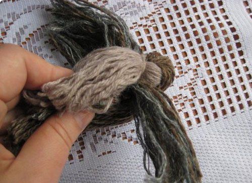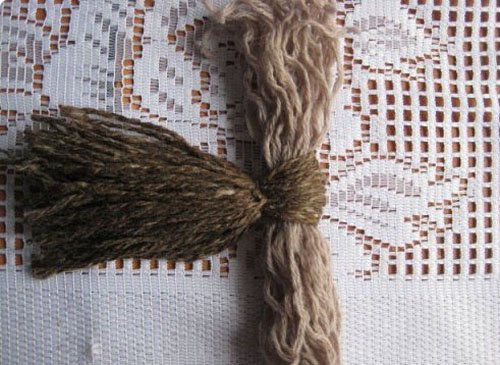 2. Cut the yarn from one end, as shown in the photo. Tie the yarn with thread in the middle for wings.