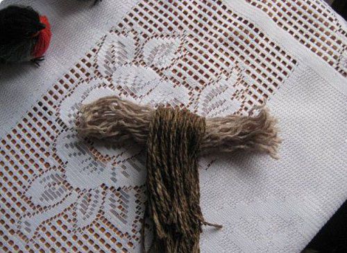 10. Bind and trim the yarn. And bind the wings of sparrow (thread to tie a ponytail).