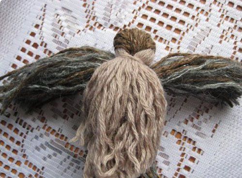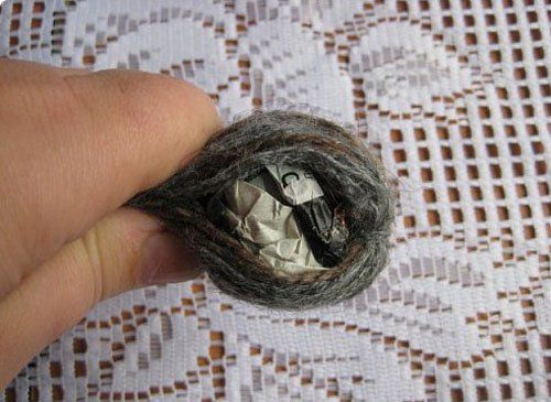 6. Crush a piece of paper and tie the yarn around it for the wings.