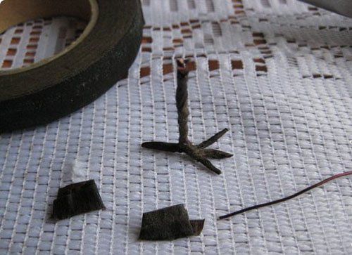 11. From the wire make a sparrow’s legs. Wrap it with tape.