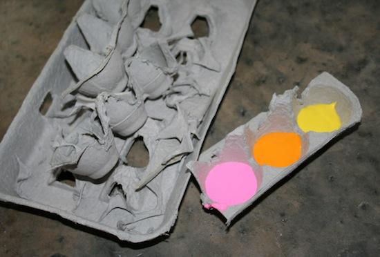 Paint the canvas with any monochrome paint and let it dry. While the paint dries, cut the cardboard packaging in such a way, so that you get a flower from each dent.