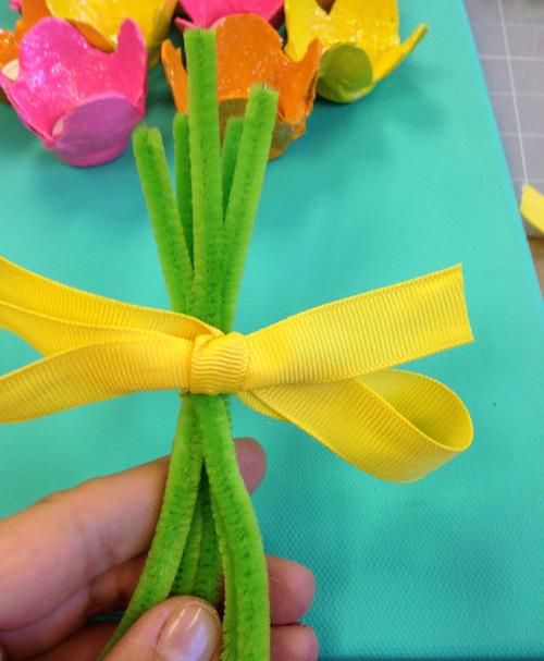 Cut the green tube cleaning brushes to the necessary length, tie them beautifully with a bright ribbon and stick them to the canvas.