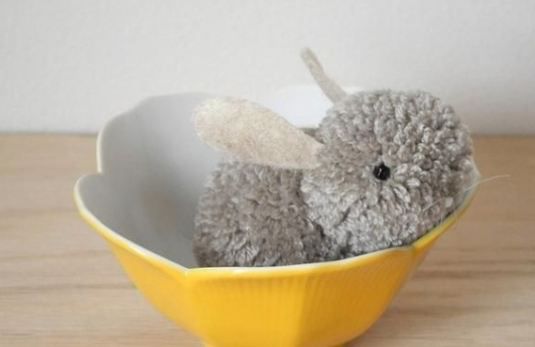 Below we give a step by step guide how to make a bunny from pom pom. It is fun and easy to make them. You can use yarn of different colors. You will enjoy this creative process, and will be happy to repeat this once again.