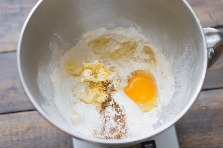 Add baking flour, mix the dough. Leave in a fridge for eight-ten hours.