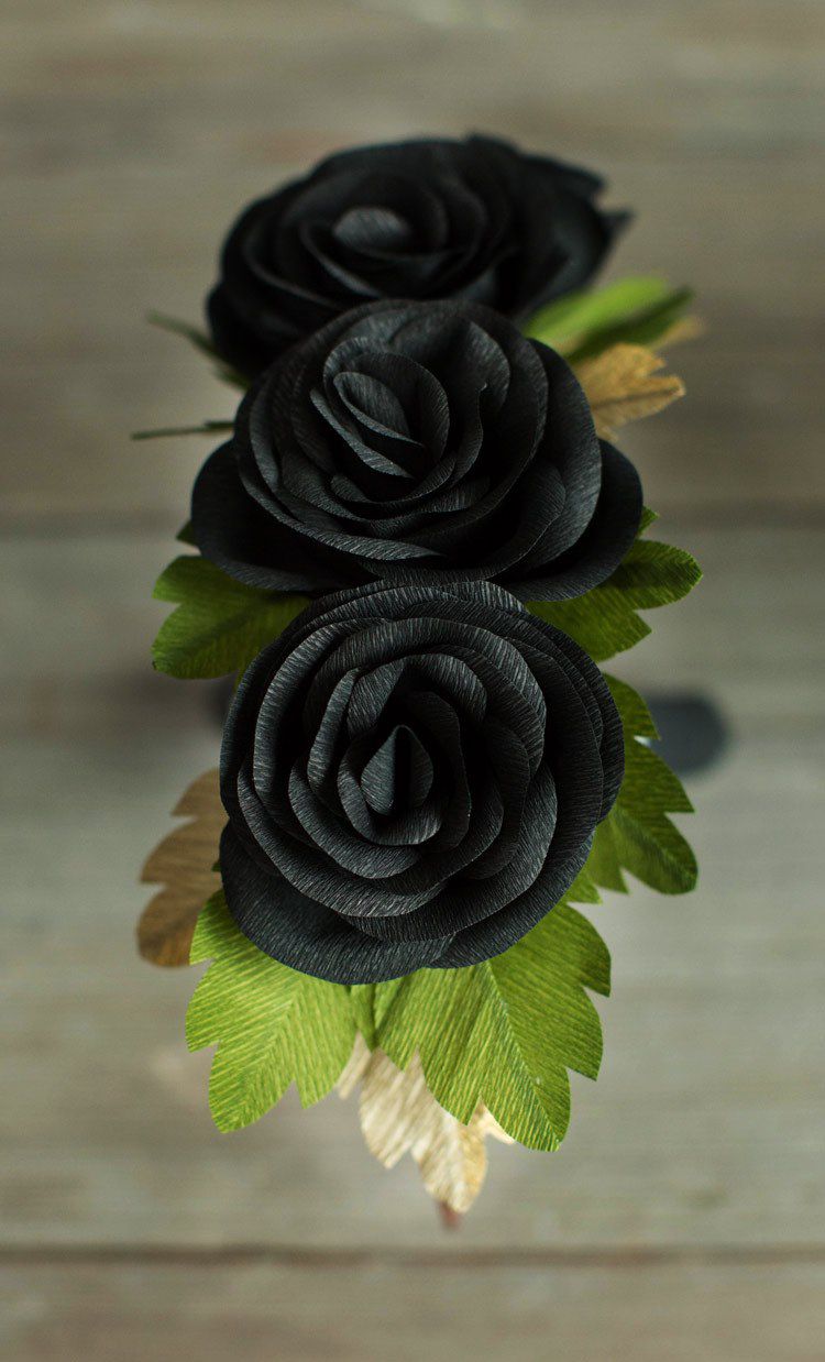 Start by cutting out your crepe pieces. Search for sketches online, if you’re not sure in your ability to cut out beautiful petals. Once you have cut your petals and leaves, assemble the roses with the floral wire. Also here is a nice tutorial how to compile a rose; look through it. The greatest thing about creating paper flower wreaths is that you can design them in any way that you would like! You may place flowers in a row or make a gorgeous flower crown by bunching the blooms.