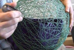 6) Take the dried sphere, pierce balloons inside and pull it out. Now you can paint the sphere with a quick-drying paint spray (better to do it on the street).
