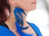In order to start working you’ll need blue feathers (for a better effect it’s better to take the feathers of different shades of blue: starting from an ultramarine and royal blue to azure and sky blue colour), a bijouterie chain, a ring of golden colour, stoppers (crimps), a hooker on which an earring will hang and with the help of which we’ll be able to wear it and nippers.
