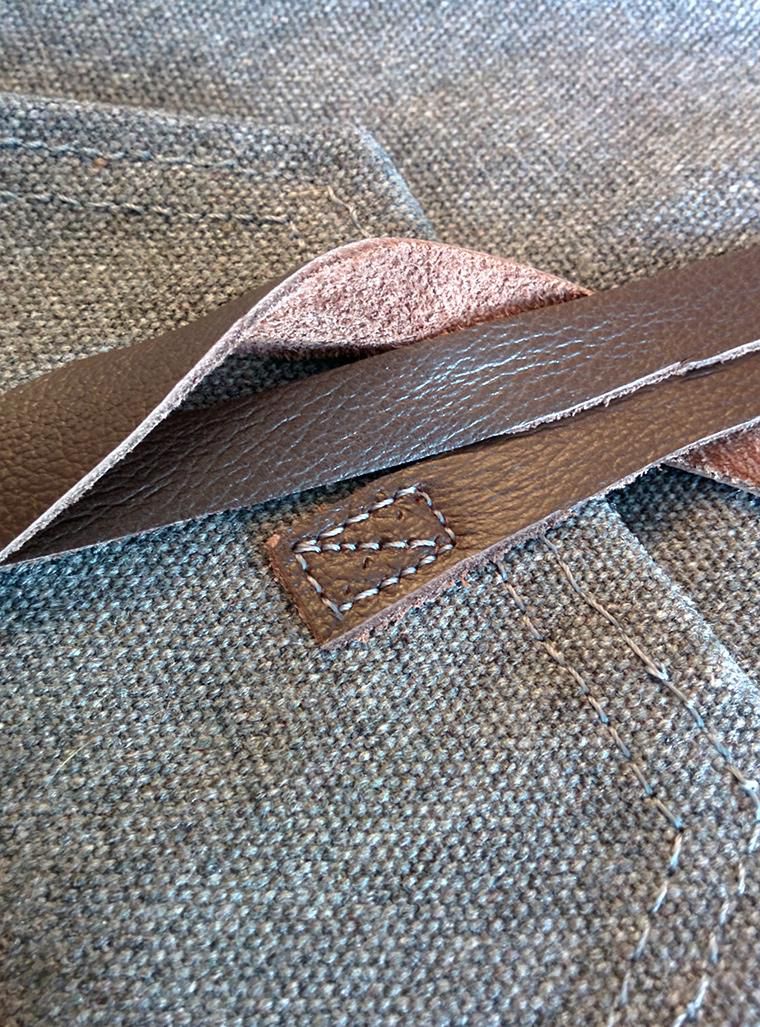 Divide the big pocket onto the parts of desired width and stitch them vertically at an appropriate distance. Sew a long leather strap or belt to the flap of the organizer.