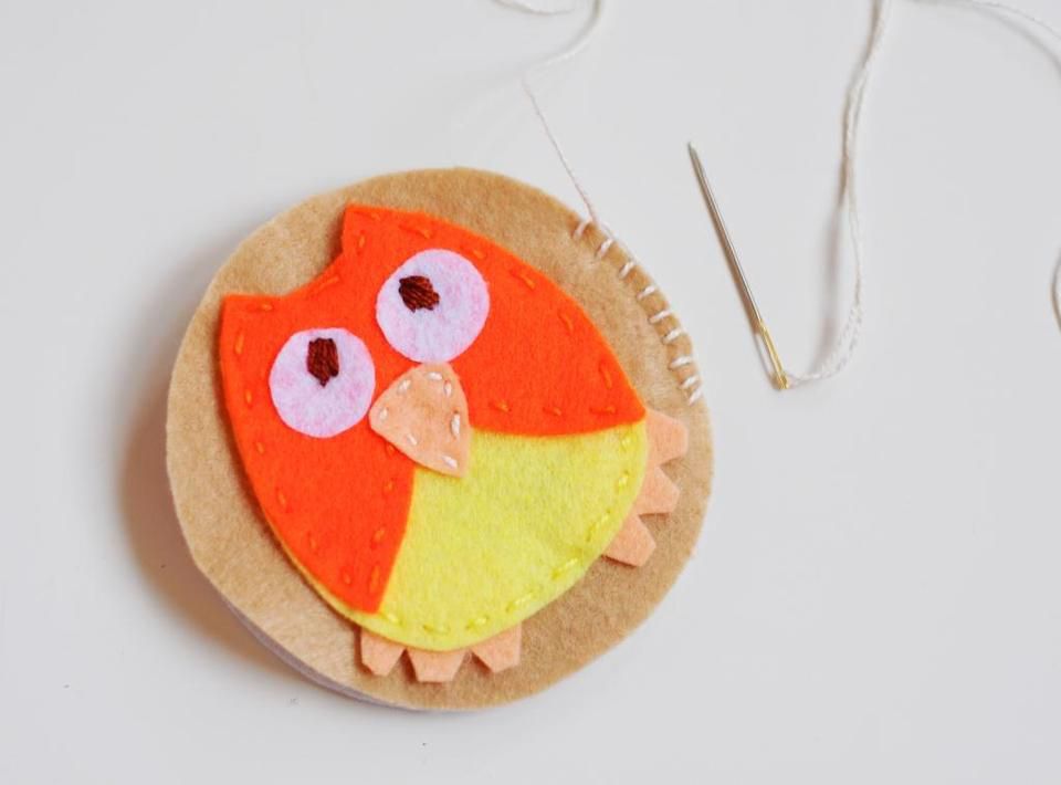 Embroider the eyes and noses of animals and birds in satin-stitches. Remember, that you can use your imagination and always add more decorative details, up to your taste.
