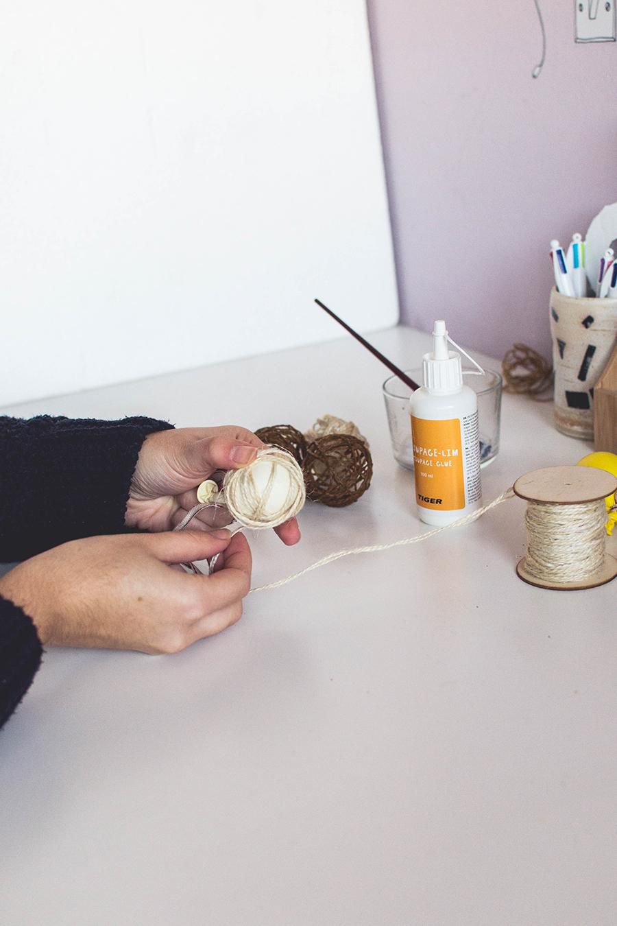 Leave the balloons to dry for at least 1 hour. Then the twine finally hardens, carefully pierce, pull the balloon out and the decorative balls are ready.