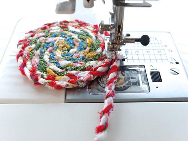 Folding thread in the form of spirals, sew the seams. You'll have to make a little effort, while laying out a spiral on the same flatness. If you will have some difficulties while stitching the spiral in the center, you can do it crosswise.