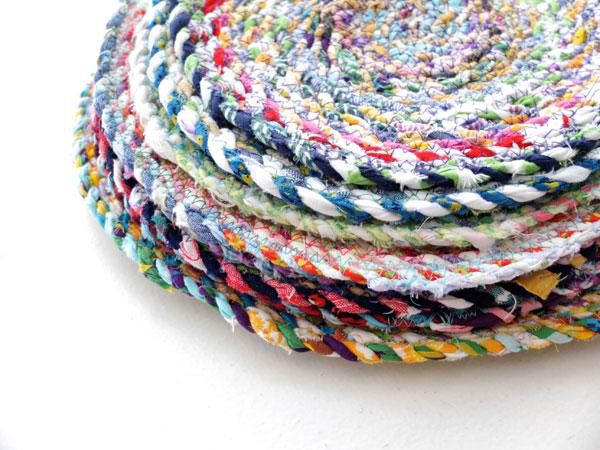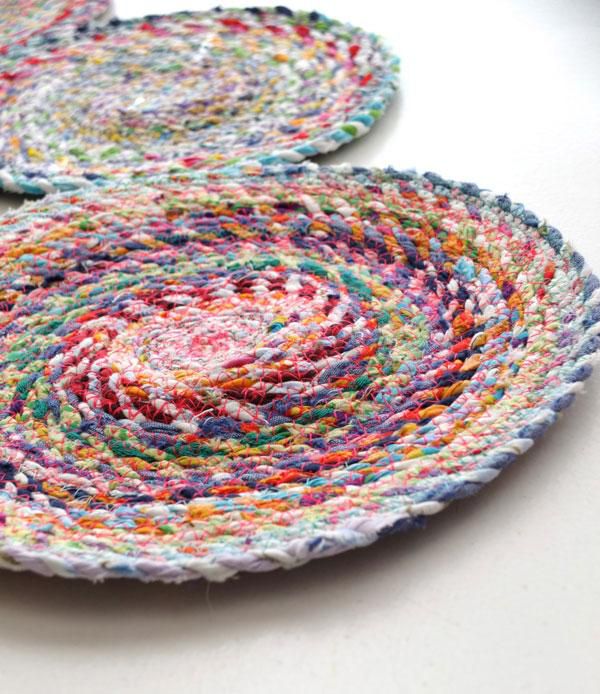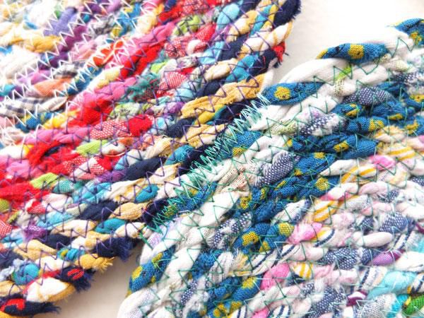 Once you sew the rug on the diameter of a plate-size, make other 8-10 such spirals. It is not necessarily to make them all of the same size and shape – you can experiment and make them oval, triangular or rectangular, etc .. Doing this step, fasten all the parts with the help of pins in such an order, in which you personally like.