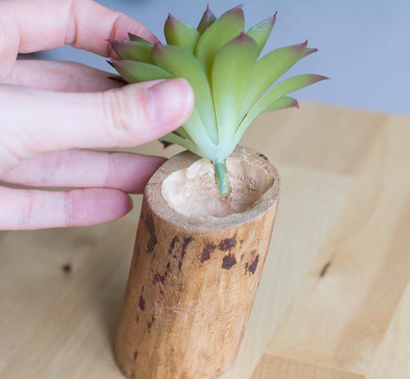 Today I’d like to show you how to make wooden pots for succulents that will perfectly complement any interior. These plants don’t need a lot of water and soil and so can grow in almost any vessel with a handful of soil. Some people find it tedious to care for succulents and they rather choose artificial flowers. And if you are such kind of person, today you’ll learn how to make a wooden flower pot from a tree for artificial succulents within just a few minutes.