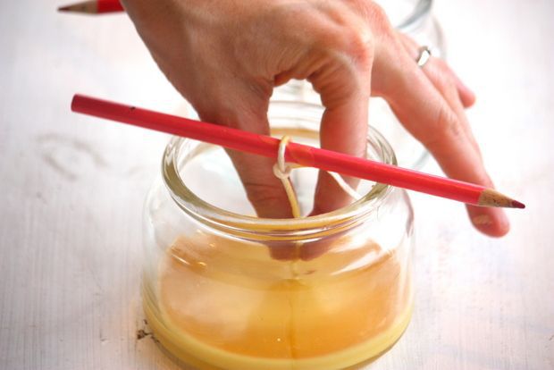- Wooden sticks for fixing wicks (1 candle = 1 stick; you can use pencils)