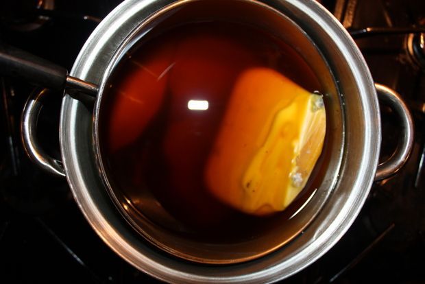 Prepare a water bath in a stewpot. Put the smaller pan with the wax in a water bath. Wax will melt faster if you will cut it into pieces or grate it. Melt wax on the slow fire. Stir constantly. Consistency should be uniform, without lumps and chunks.