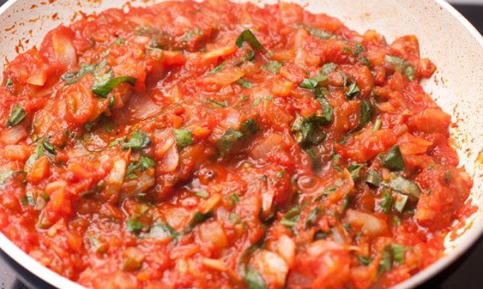 Stir it all thoroughly and give a warm for some more minutes, after that, you should taste the sauce. If it seems too sour, you can add a little sugar.