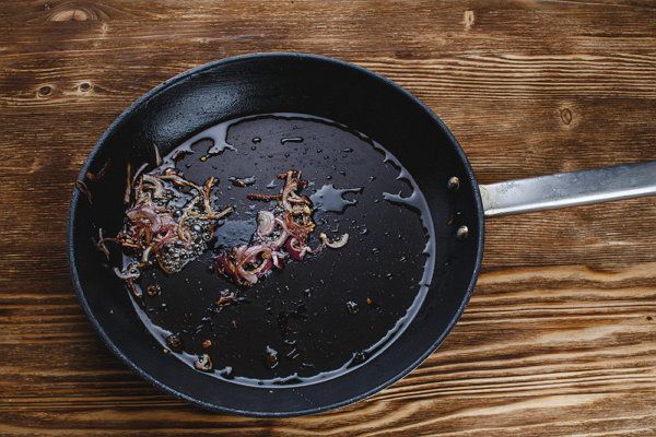3. Brown the onion in the sweet butter, add the honey and caramelize the ingredients for 1 minute on the middle fire.