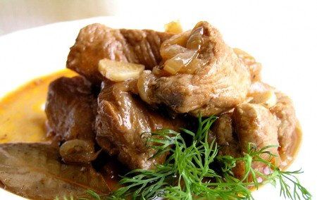 This is the most popular dish in Philippines! And each house wife has her own signature recipe. Adobo is cooked more often from chicken or pork (sometimes 50x50), slices of meat are fried first and then they are stewed in marinade from vinegar and soy sauce with addition of pepper, garlic and bay leaf. Add other ingredients to your taste. For example, add paprika, ginger and cloves. In this case, your kitchen will be filled with an amazing flavor! The meat turns very tender, fragrant and in addition, this dish does not at all require long standing near a stove! Just you try!